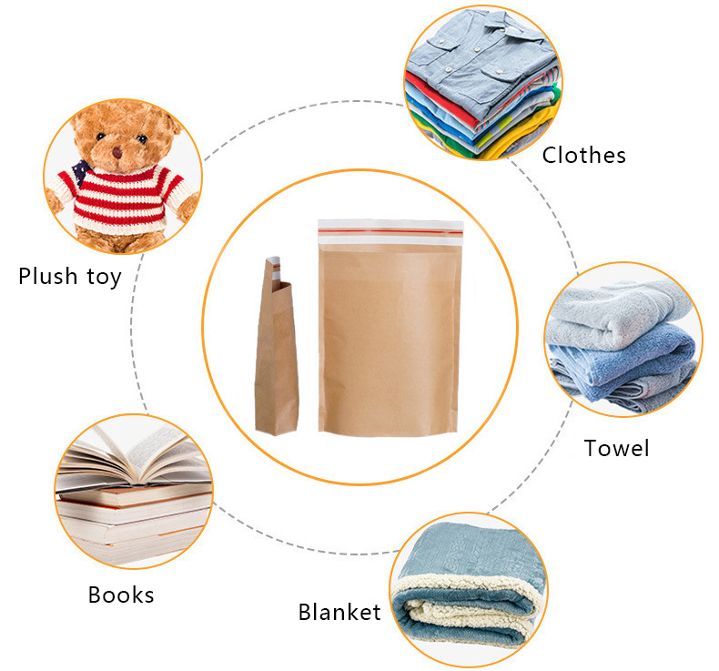 Tacaíonn málaí páipéir kraft in-bhithmhillte freisin méid saincheaptha agus roghnú tiús bunaithe ar riachtanais phacáistithe. Is féidir málaí páipéir kraft saincheaptha a tháirgeadh i méideanna iomadúla atá oiriúnach do bhaill éadaigh éadroma, éadaí meánmheáchan, agus táirgí miondíola dlúth. Feabhsaíonn málaí páipéir Kraft le haghaidh pacáistiú éadaí éifeachtúlacht pacála agus laghdaíonn siad ró-dhramhaíl ábhar, ag tacú le hoibríochtaí loingseoireachta agus lóistíochta inbhuanaithe atá éifeachtach ó thaobh costais.