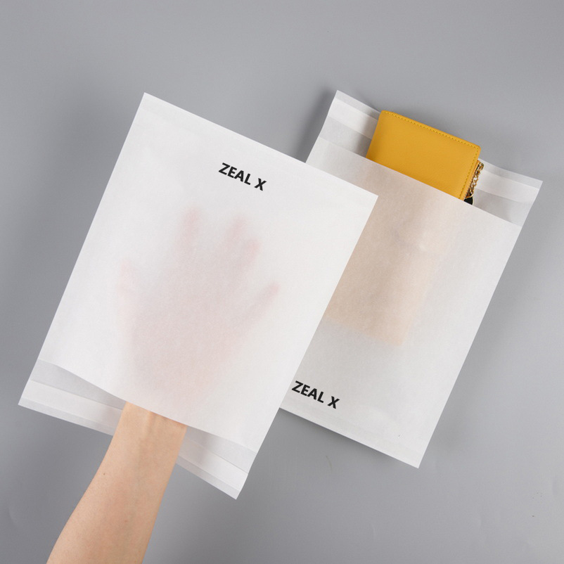 Ní hamháin go gcomhlíonann ár mála páipéir Glassine Athchúrsáilte na caighdeáin chomhshaoil is airde ach freisin seachadann sé feidhmíocht eisceachtúil i miondíol agus ríomhthráchtáil. Soláthraíonn a dhromchla dlúth, réidh taise agus friotaíocht ola den scoth, rud a fhágann go bhfuil sé iontach do bhaill éadaigh íogair agus d'iontáin chlóite.