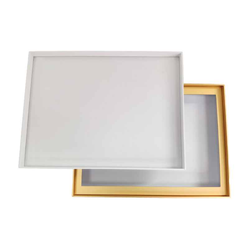 AnBosca bronntanais neamh agus crécruthaítear é ag baint úsáide as ábhair ardchaighdeáin a chinntíonn marthanacht, elegance, agus éicea-chairdiúlacht. Leagann ár bpróiseas táirgthe béim ar chruinneas agus aird ar mhionsonraí, rud a fhágann go bhfuil táirge ann a chosnaíonn a bhfuil ann ach a fheabhsaíonn an t -eispéireas foriomlán. Mar gheall ar dhearadh sleek agus bailchríoch sofaisticiúil an bhosca tá sé oiriúnach do bhronntanais só, do chur chun cinn corparáideach, agus do phacáistiú miondíola ardleibhéil. Le roghanna saincheaptha ar fáil i dtéarmaí méid, dath, agus dearaí clóite, is féidir le gnólachtaí na boscaí seo a chur in oiriúint chun a bhféiniúlacht bhranda uathúil a léiriú agus chun tuiscint bhuan a chruthú ar a gcuid custaiméirí.