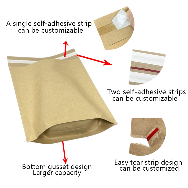 Gné: In-bhithdhíghrádaithe Kraft Paper Mailer dea-fheidhmíocht uiscedhíonach, gan eagla ar laethanta báistí a thuilleadh; Úsáid ghreamaitheach Super, scrios séalaithe rubair, príobháideacht a chosaint, tá príobháideacht maith.